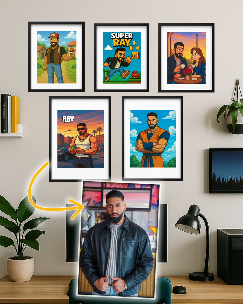 Mit unserem individuellen Design wirst du zur Hauptfigur deines eigenen Universums. Ob energiegeladener Kämpfer, lässige Straßenlegende oder märchenhafte Cartoon-Version – du wählst deinen Stil, wir gestalten dein persönliches Kunstwerk.