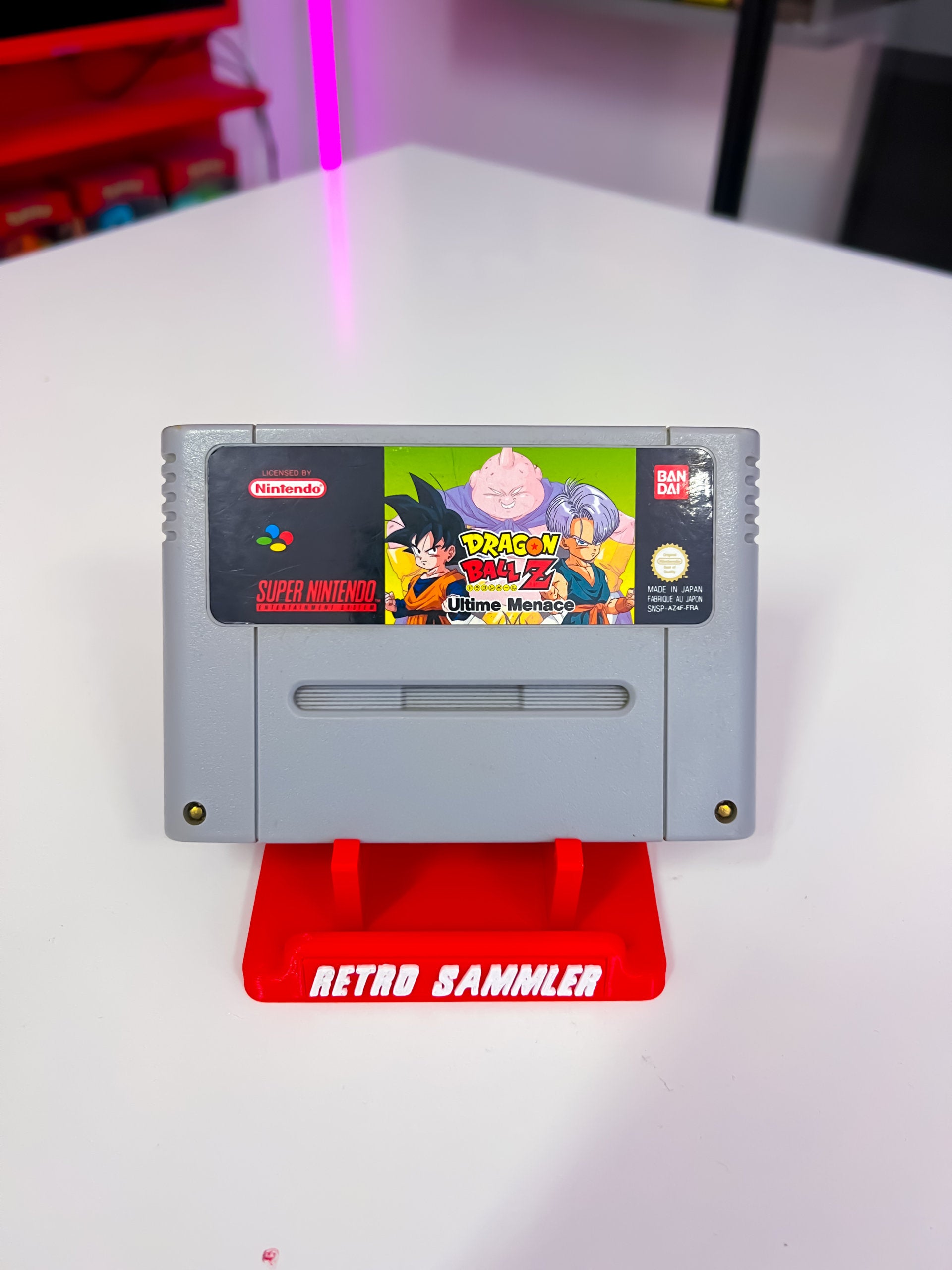 DragonBall Z Ultime Menace für das Super Nintendo ist ein 2D-Kampfspiel, das auf der beliebten Anime-Serie basiert. Spieler können aus einer Vielzahl von Charakteren wählen und in intensiven Kämpfen gegeneinander antreten. Das Spiel bietet verschiedene Spielmodi, darunter Story-Modus, Turniere und Mehrspieler-Modi, in denen Spieler ihre Lieblingscharaktere steuern und ihre einzigartigen Fähigkeiten und Spezialangriffe nutzen können, um ihre Gegner zu besiegen. Mit ikonischen Charakteren und Action-basiertem Gameplay bietet "DragonBall Z Ultime Menace" den Fans ein intensives Spielerlebnis in der DragonBall-Welt.