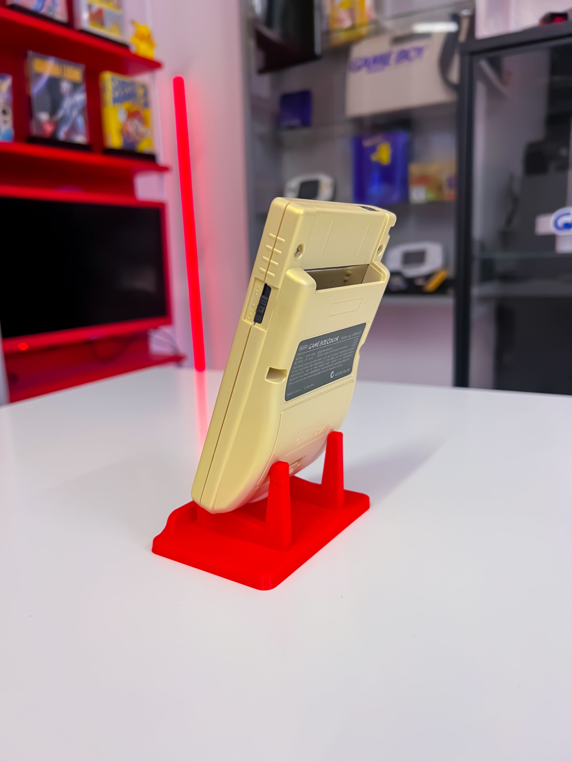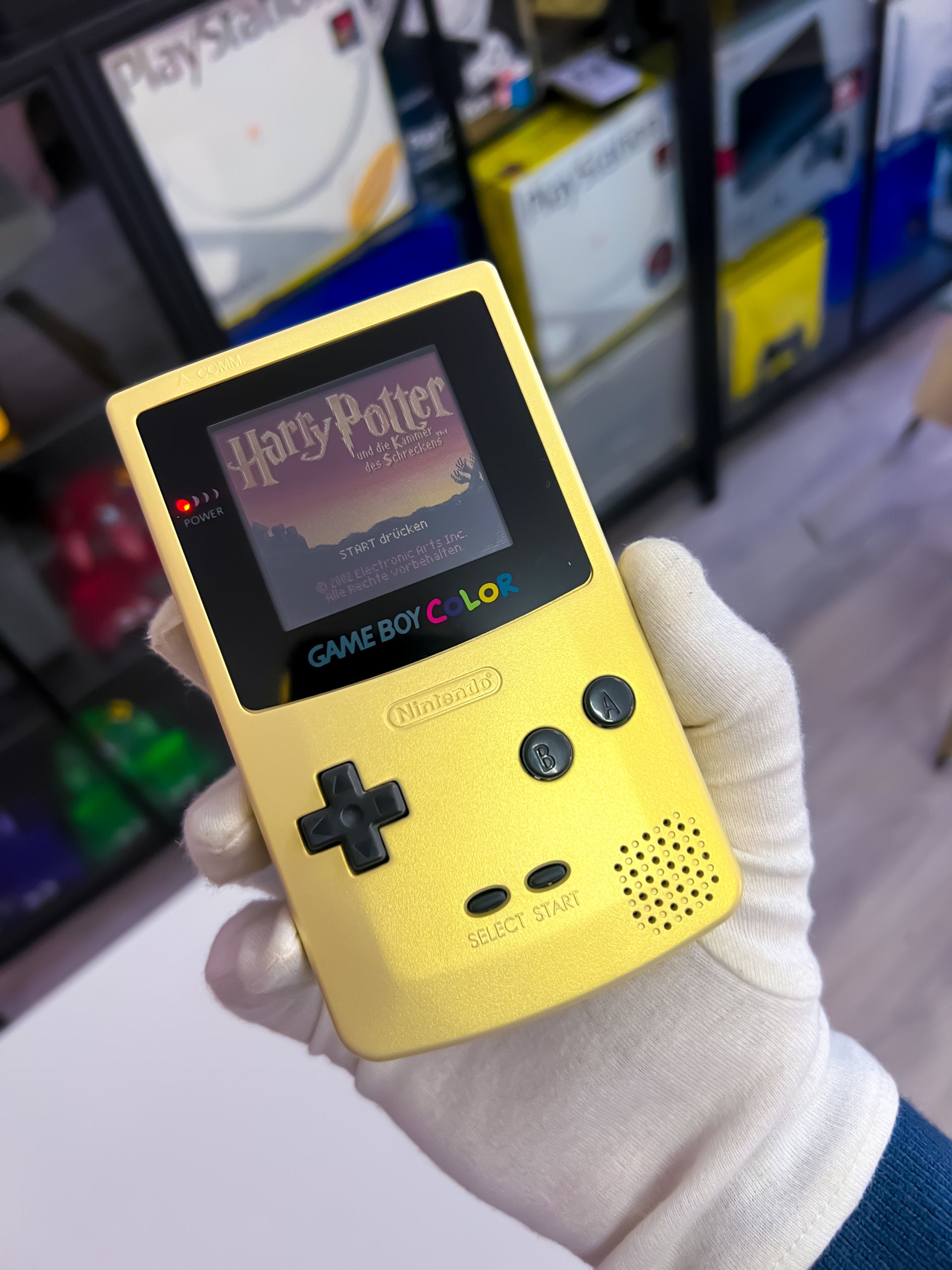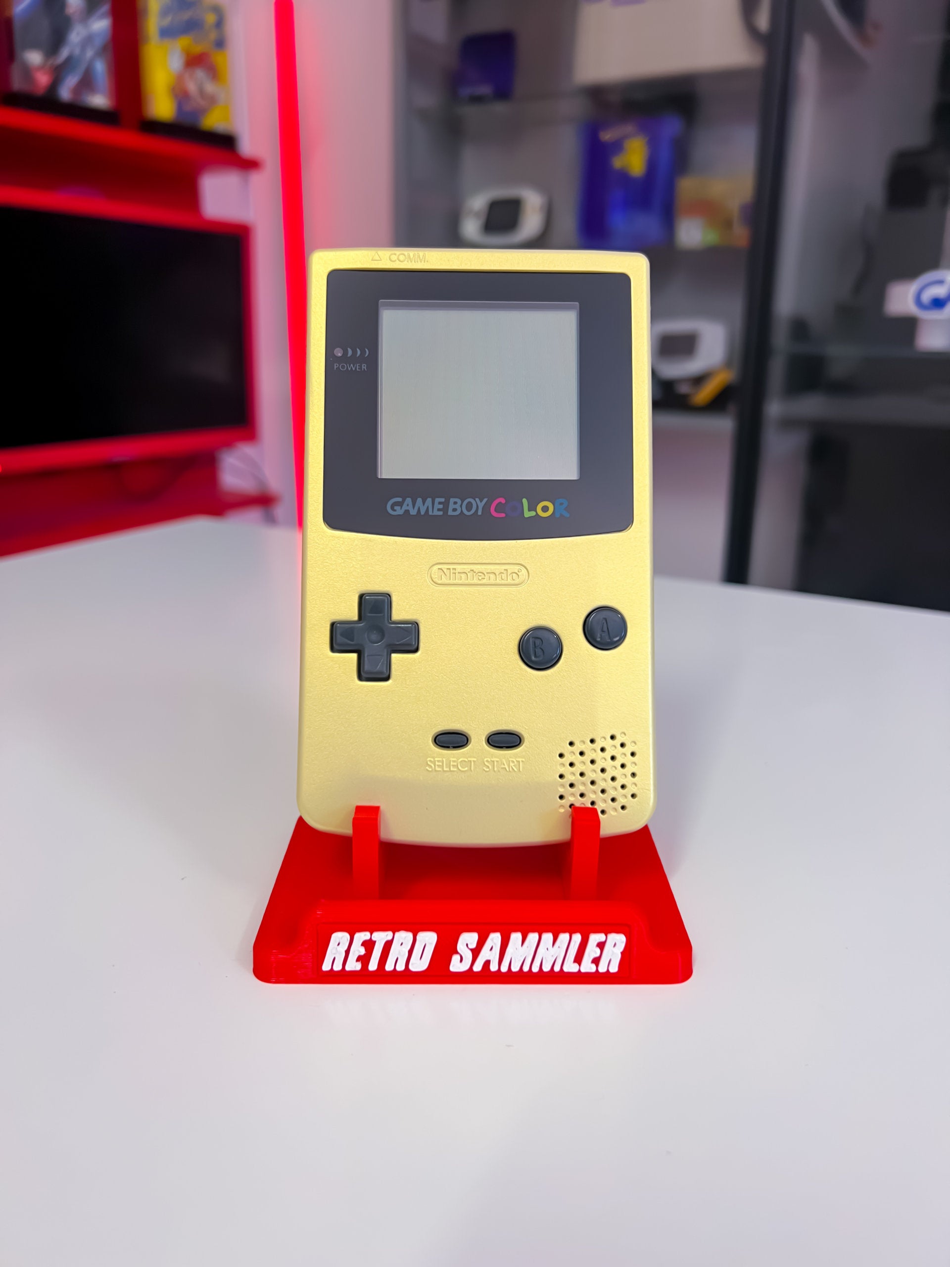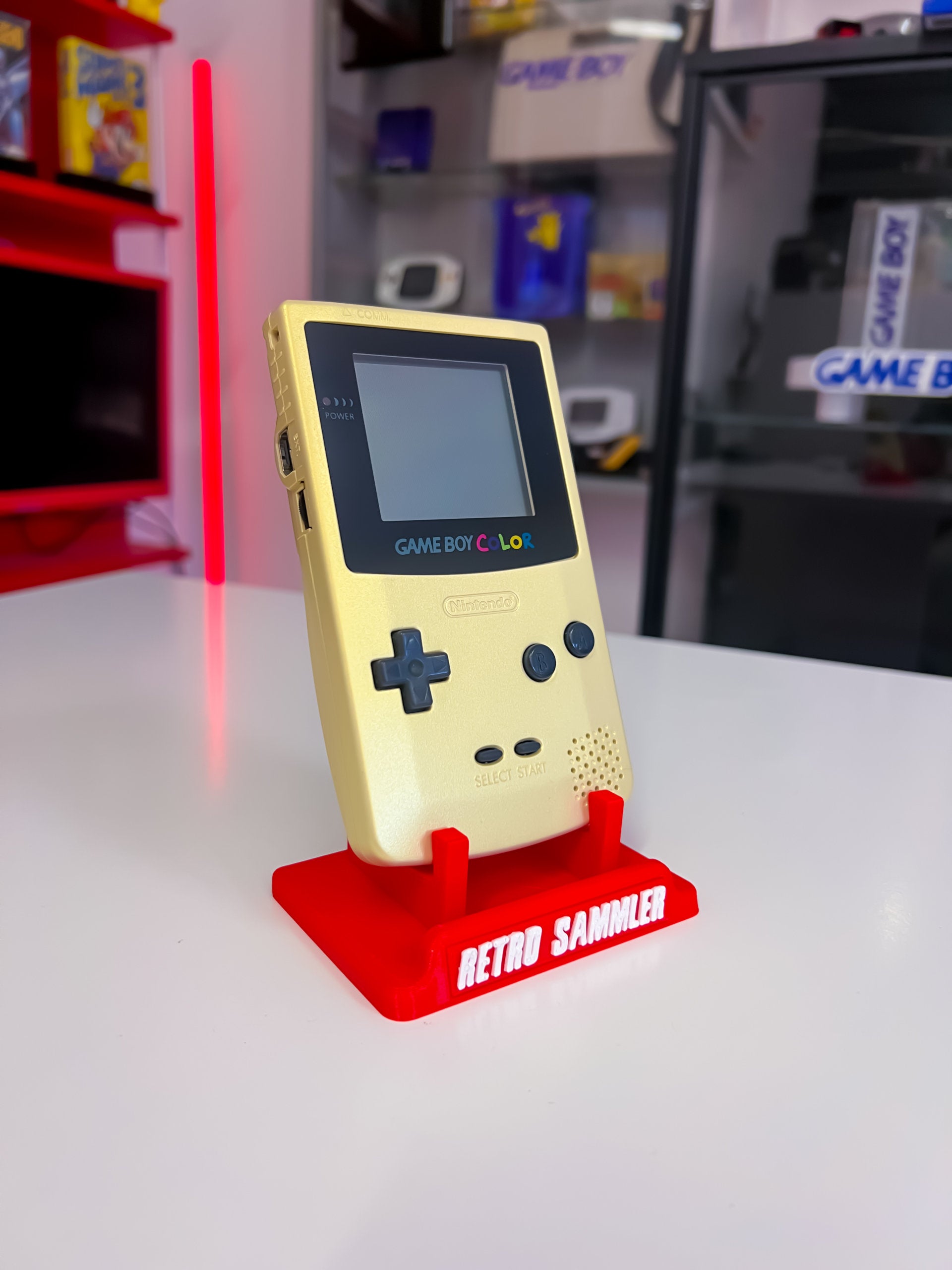 „Der GameBoy Color Gold Matt Custom ist eine individuell gestaltete Version der tragbaren Spielkonsole. Mit einem speziellen matten Gold-Finish und möglicherweise einzigartigen Designs oder Aufklebern bietet er ein personalisiertes Spielerlebnis für die Nutzer*innen, um ihre Lieblingsspiele wie Pokémon oder andere GameBoy Color-Titel zu genießen.“