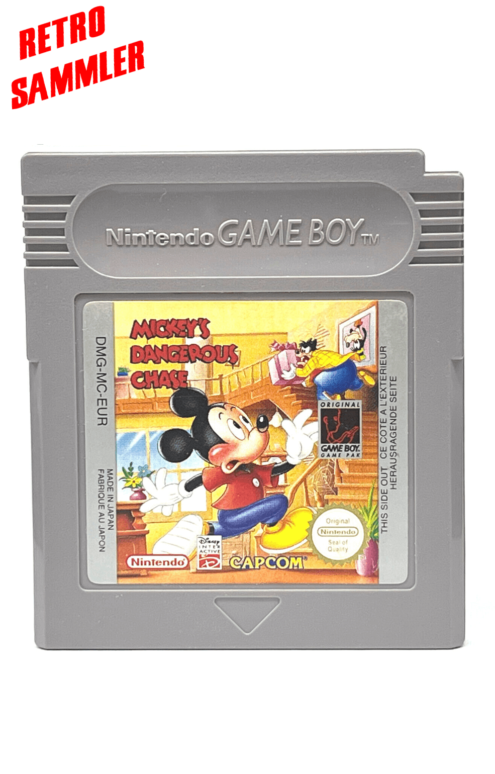 Mickey's Dangerous Chase für den Game Boy ist ein Plattformspiel mit Mickey Mouse, bei dem Spieler Hindernisse überwinden und Feinde bekämpfen, um Minnie Mouse zu retten.