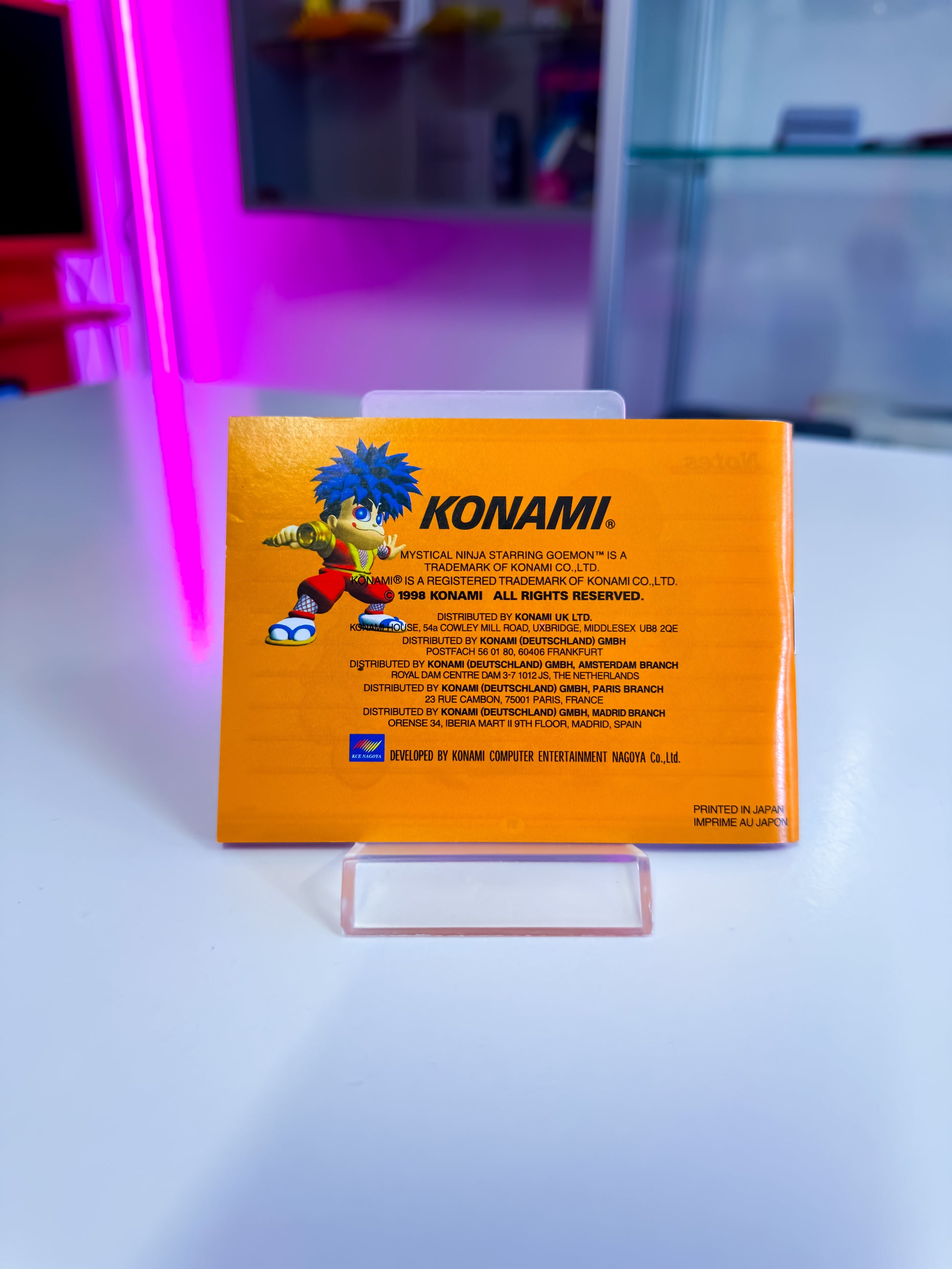 Zum Verkauf steht das originale „Mystical Ninja Starring Goemon“ für den Nintendo Game Boy, erschienen 1997 von Konami. Das Spiel befindet sich in der vollständigen Originalverpackung (CIB = Complete in Box) – inklusive Spielmodul, Anleitung, Verpackung und sogar dem Original-Kassenbon. Ein besonderes Sammlerstück für Fans der beliebten Goemon-Reihe und Retro-Gamer.