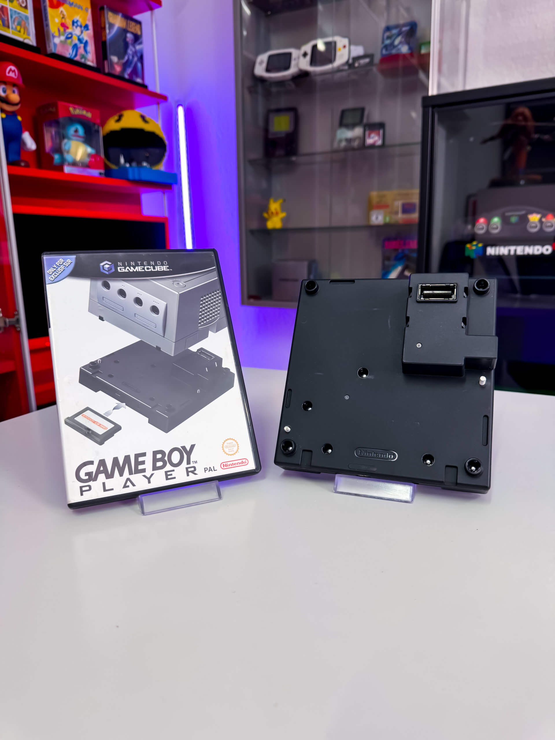 Der Nintendo GameCube GameBoy Player ist ein Zubehör für den Nintendo GameCube, das es ermöglicht, Game Boy-, Game Boy Color- und Game Boy Advance-Spiele auf einem Fernseher zu spielen. Es wird unter dem GameCube montiert und erfordert eine spezielle Boot-Disk (CD), um zu funktionieren.