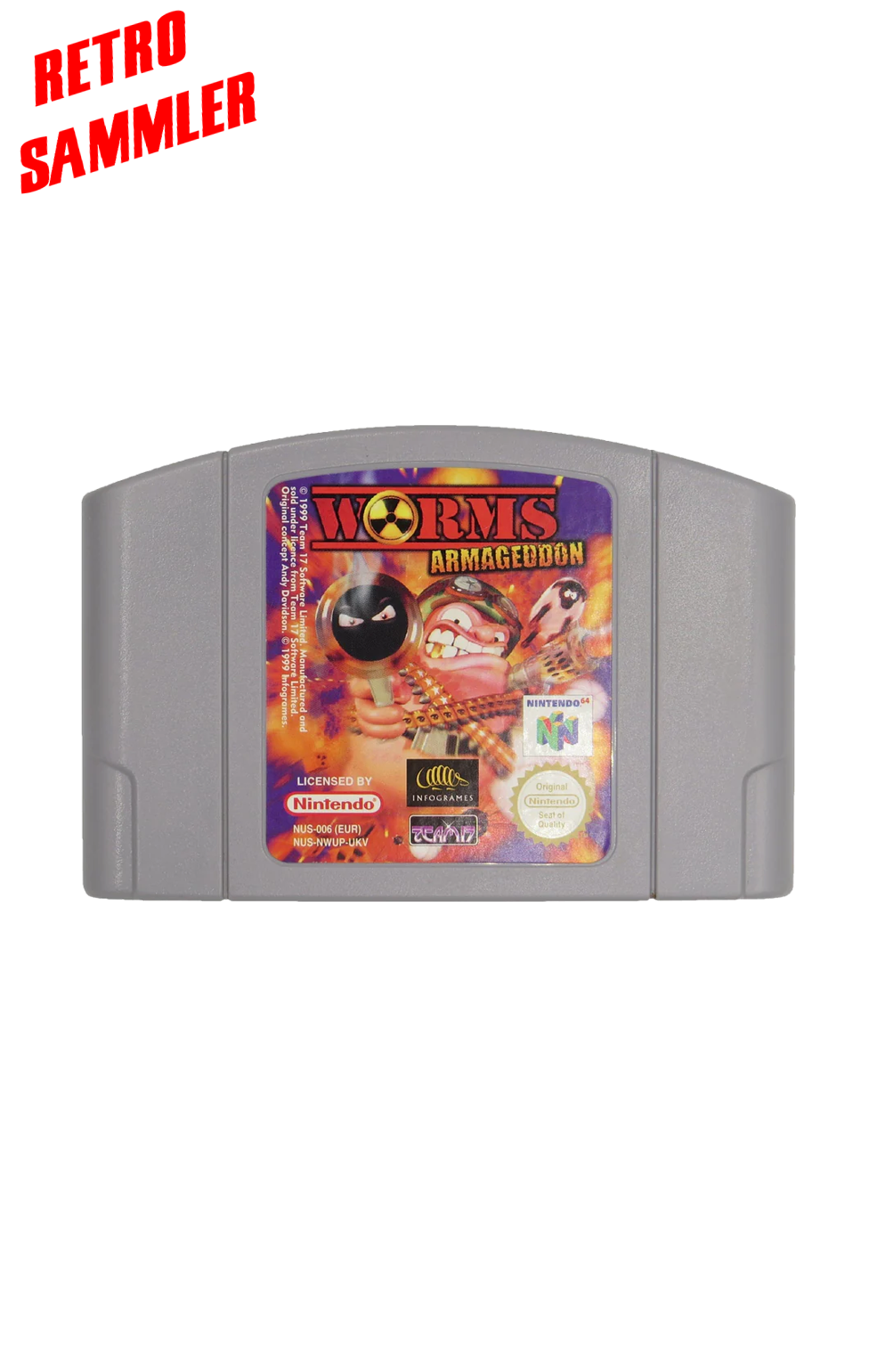 Erlebe mit Worms Armageddon für den N64 eines der beliebtesten rundenbasierten Taktikspiele aller Zeiten – jetzt auf der klassischen Nintendo 64 Konsole! Mit kultigem Humor, explosiver Action und strategischem Tiefgang begeistert dieses Game seit Jahrzehnten Retro-Gamer und Sammler gleichermaßen.